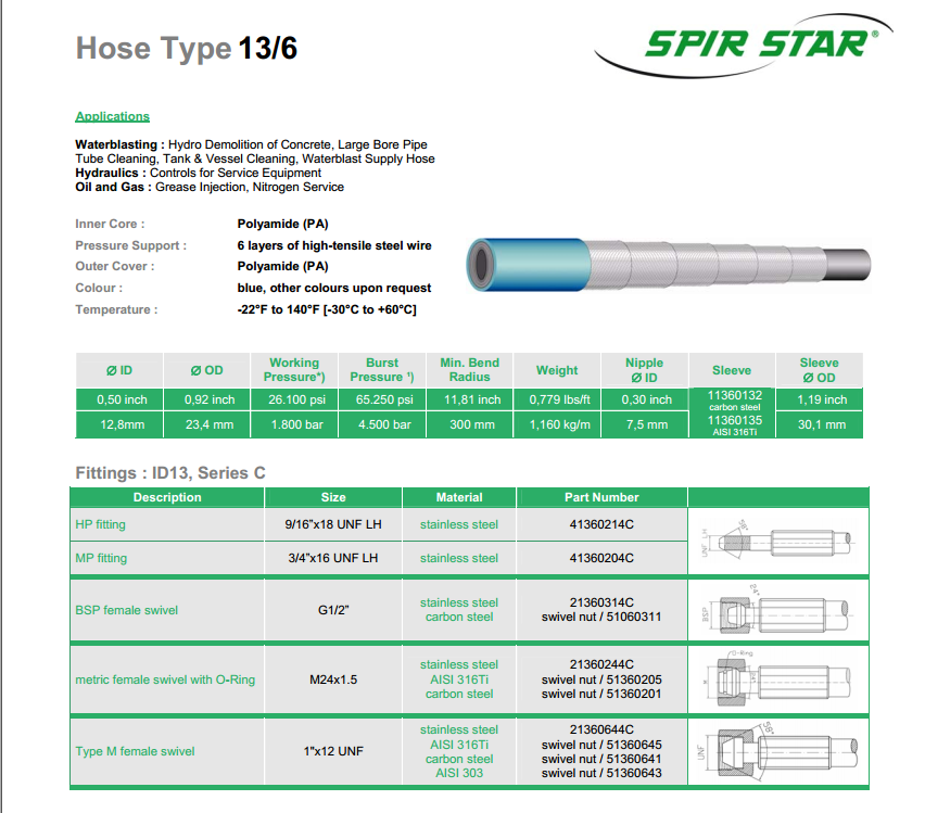 您現(xiàn)在的位置是:首頁 >> 產(chǎn)品中心 >> Spirstar Hose Type 13/6